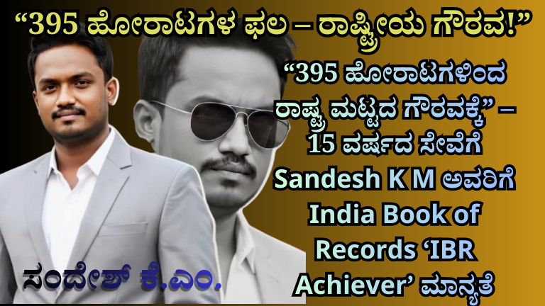 ಸಾಮಾಜಿಕ ಸೇವೆ ಎಂದರೆ ಕೇವಲ ಮಾತಲ್ಲ, ಅದು ಕಾರ್ಯದಿಂದ ಸಾಬೀತಾಗಬೇಕು. ಅದಕ್ಕೆ ಉದಾಹರಣೆ ಎಂದರೆ Sandesh K M ಅವರ ಸಾಧನೆ. ಕಳೆದ 15 ವರ್ಷಗಳಿಂದ ನಿರಂತರವಾಗಿ ಸಾಮಾಜಿಕ ಕ್ಷೇತ್ರದಲ್ಲಿ ಸೇವೆ ಸಲ್ಲಿಸುತ್ತಿರುವ ಇವರಿಗೆ ಇದೀಗ India Book of Records ವತಿಯಿಂದ “IBR Achiever” ಎಂಬ ಗೌರವ ದೊರೆತಿದೆ.